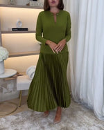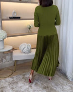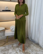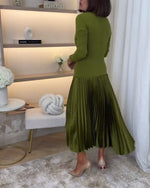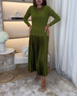 Grøn kjole med lange ærmer og plissering