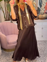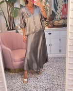 To-delt sæt | Nederdel og bluse med knapper og rosemotiv