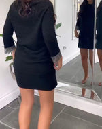 Strikket Top V-Udskæring Sexig Perlebrodseret Ærme