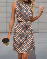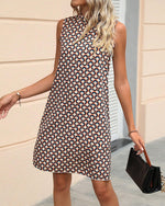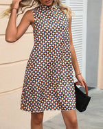 Elegantmønstret kjole uden ærmer med ståkrave