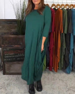SPECIFIKATIONER Stil: Afslappet Materiale: Bomuldsblanding Kjoletype: Shift-kjole Kjolelængde: Maxi Halsudskæring: V-udskæring Mønstertype: Farveblok Ærmetype: Almindeligt ærme Ærmelængde: Trekvartærmet Detaljer: Lomme Pasform: Almindelig Sæson/årstid: Forår,Sommer Lejlighed: Daglig Pakken inkluderer: 1 x Kjole STØRRELSESTABEL (cm) Størrelse...