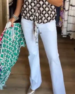 SPECIFIKATIONER Stil: Afslappet Materiale: 100% Bomuld Mønstertype: Ensfarvet Buksetype: Blyant bukser Bukselængde: Lang Taljetype: Mellem talje Pasform: Almindelig Sæson/årstid: Forår,Efterår Detaljer: Lomme,Snøre op,Snøre Lejlighed: Daglig Pakken inkluderer: 1 x Bukser STØRRELSESTABEL (cm) Størrelse Talje Hofte Længde S 67 98 93 M...