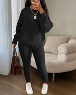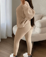 Ensfarvet afslappet todelt sæt | Striktrøje og bukser