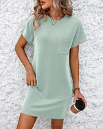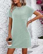 Kjole Ensfarvet Rundhalset Slit Tunika