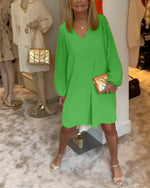SPECIFIKATIONER Stil: Afslappet Materiale: Bomuldsblanding Kjoletype: Shift-kjole Kjolelængde: Maxi Halsudskæring: V-udskæring Mønstertype: Farveblok Ærmetype: Almindeligt ærme Ærmelængde: Trekvartærmet Detaljer: Lomme Pasform: Almindelig Sæson/årstid: Forår,Sommer Lejlighed: Daglig Pakken inkluderer: 1 x Kjole STØRRELSESTABEL (cm) Størrelse...