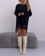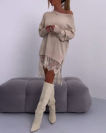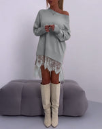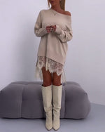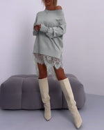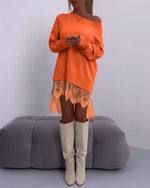 Ensfarvet slim fit off-shoulder sweater med blonder
