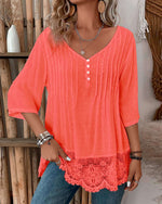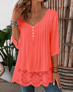 SPECIFIKATIONER Top type: Toppe Stil: Afslappet Materiale: Spandex,Polyester Lejlighed: Daglig Halsudskæring: V-udskæring Ærmetype: Almindeligt ærme Ærmelængde: Langærmet Pasform: Almindelig Sæson/årstid: Forår,Efterår Detaljer: Knapper,Rynket Pakken inkluderer: 1 x Top STØRRELSESTABEL (cm) Størrelse Buste Længde S 97 65 M 101 66.5 L 1...
