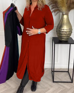 Kjole Ensfarvet Rundhalset Slit Tunika