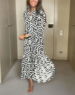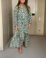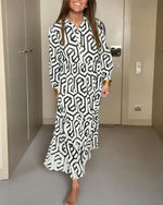 Mønstret kjole med lange ærmer