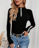 Revers-Paillet-Langærmet Bluse