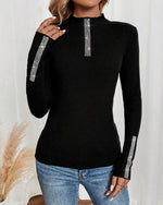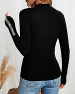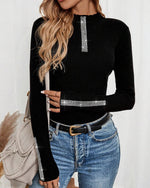 Strikket Top V-Udskæring Sexig Perlebrodseret Ærme