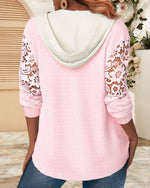 Lyserød hættetrøje med hulmønstrede ærmer