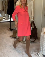 SPECIFIKATIONER Stil: Afslappet Materiale: Bomuldsblanding Kjoletype: Shift-kjole Kjolelængde: Knælængde Halsudskæring: V-udskæring Mønstertype: Ensfarvet Ærmetype: Almindeligt ærme Ærmelængde: Langærmet Detaljer: Lomme,Knapper Pasform: Almindelig Sæson/årstid: Forår,Efterår Lejlighed: Daglig Pakken inkluderer: 1 x Kjole STØRRELSESTABEL (cm) ...