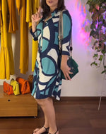 Langærmet kjole med knapper og print
