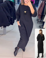 Kjole Ensfarvet Rundhalset Slit Tunika