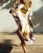 Kjole med lommer og bladprint