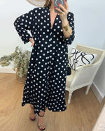 SPECIFIKATIONER Stil: Afslappet Materiale: Bomuldsblanding Kjoletype: Shift-kjole Kjolelængde: Maxi Halsudskæring: V-udskæring Mønstertype: Farveblok Ærmetype: Almindeligt ærme Ærmelængde: Trekvartærmet Detaljer: Lomme Pasform: Almindelig Sæson/årstid: Forår,Sommer Lejlighed: Daglig Pakken inkluderer: 1 x Kjole STØRRELSESTABEL (cm) Størrelse...