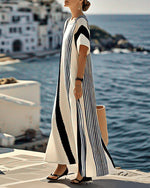 SPECIFIKATIONER Stil: Afslappet Materiale: 65% Bomuld, 32% Polyester, 3% Spandex Kjoletype: A-linje Kjolelængde: Midi Halsudskæring: Rund hals Mønstertype: Farveblok Ærmetype: Almindeligt ærme Ærmelængde: Kortærmet Detaljer: Lomme,Lynlås Pasform: Almindelig Sæson/årstid: Forår,Sommer Lejlighed: Daglig Pakken inkluderer: 1 x Kjole STØRRELSE...