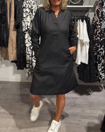 Kjole Ensfarvet Rundhalset Slit Tunika