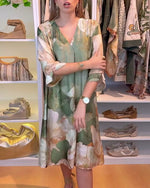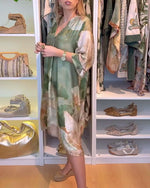 SPECIFIKATIONER Stil: Afslappet Materiale: Bomuldsblanding Kjoletype: Shift-kjole Kjolelængde: Maxi Halsudskæring: V-udskæring Mønstertype: Farveblok Ærmetype: Almindeligt ærme Ærmelængde: Trekvartærmet Detaljer: Lomme Pasform: Almindelig Sæson/årstid: Forår,Sommer Lejlighed: Daglig Pakken inkluderer: 1 x Kjole STØRRELSESTABEL (cm) Størrelse...