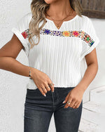Strikket Top V-Udskæring Sexig Perlebrodseret Ærme