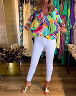 Farverig langærmet bluse med print