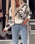 SPECIFIKATIONER Kategori: Sweatre Stil: Afslappet Materiale: Akryl,Spandex,Polyester Halsudskæring: Rund hals Mønstertype: Tryk Ærmetype: Flagermuse-ærmer Ærmelængde: Langærmet Pasform: Almindelig Lejlighed: Daglig Sæson/årstid: Forår,Efterår Pakken inkluderer: 1 x Sweater STØRRELSESTABEL (cm) Størrelse Buste Længde S 97 65 M 101 66...