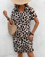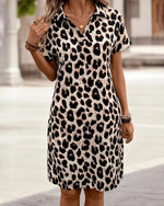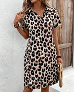 Leopardmønstret Slim Fit Kjole Med Reverskrave