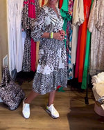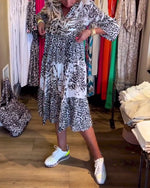 Hverdagskjole med delvist leopardprint
