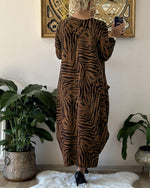 Moderne løs shiftkjole med print og sidelomme