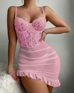 Natkjole Strømpebånd Mesh Gennemsigtig