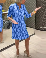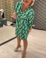grøn kjole med print og trekvarte ærmer