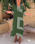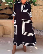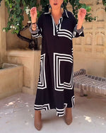 SPECIFIKATIONER Stil: Afslappet Materiale: Bomuldsblanding Kjoletype: Shift-kjole Kjolelængde: Maxi Halsudskæring: V-udskæring Mønstertype: Farveblok Ærmetype: Almindeligt ærme Ærmelængde: Trekvartærmet Detaljer: Lomme Pasform: Almindelig Sæson/årstid: Forår,Sommer Lejlighed: Daglig Pakken inkluderer: 1 x Kjole STØRRELSESTABEL (cm) Størrelse...