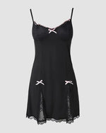 Natteøjne Knipling V-Hals Sløjfe Dekoration Ærmeløs Babydoll Sexig Gennemsigtig Teddy