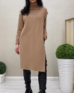 Kjole Ensfarvet Rundhalset Slit Tunika