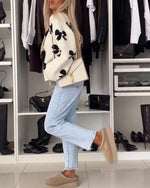Strikket Top V-Udskæring Sexig Perlebrodseret Ærme