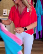 Strikket Top V-Udskæring Sexig Perlebrodseret Ærme