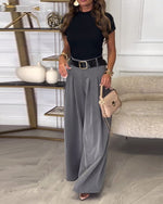 Ensfarvede bukser med brede ben