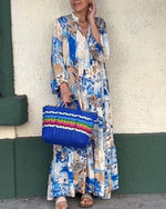 Temperament lang kjole med løs print