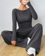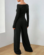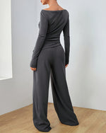 Todelt sæt - ensfarvet top og bukser med brede ben