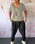 Strikket Top V-Udskæring Sexig Perlebrodseret Ærme