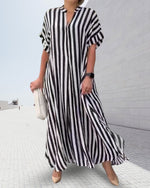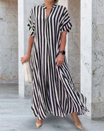 SPECIFIKATIONER Stil: Afslappet Materiale: Bomuldsblanding Kjoletype: Shift-kjole Kjolelængde: Maxi Halsudskæring: V-udskæring Mønstertype: Farveblok Ærmetype: Almindeligt ærme Ærmelængde: Trekvartærmet Detaljer: Lomme Pasform: Almindelig Sæson/årstid: Forår,Sommer Lejlighed: Daglig Pakken inkluderer: 1 x Kjole STØRRELSESTABEL (cm) Størrelse...