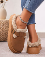 Varme hjemmesko med spænde og tykt plysfor