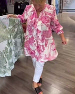SPECIFIKATIONER Top type: Bluser Stil: Afslappet Materiale: Bomuldsblanding Lejlighed: Daglig Halsudskæring: Revers Mønstertype: Tryk Ærmetype: Almindeligt ærme Ærmelængde: Trekvartærmet Pasform: Almindelig Sæson/årstid: Forår,Sommer,Efterår Pakken inkluderer: 1 x Bluse STØRRELSESTABEL (cm) Størrelse Buste Længde S 92 65 M 96 66.5 L 10...
