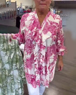 SPECIFIKATIONER Top type: Bluser Stil: Afslappet Materiale: Bomuldsblanding Lejlighed: Daglig Halsudskæring: Rund hals Mønstertype: Tryk Ærmetype: Almindeligt ærme Ærmelængde: Trekvartærmet Pasform: Almindelig Sæson/årstid: Forår,Sommer Detaljer: Knapper,Rynket Pakken inkluderer: 1 x Bluse STØRRELSESTABEL (cm) Størrelse Buste Længde S 97 6...