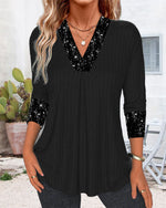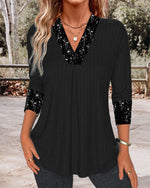 Afslappet ensfarvet patchwork plisseret top med pailletter