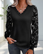 Top Med V-Udskæring Og Lange Ærmer I Kontrastfarver