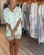 Bluse Alsidig V-Hals Printet Halve Ærmer