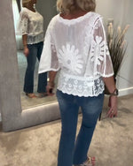 Bluse Rund Hals Blonde Hæklet Korte Ærmer