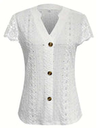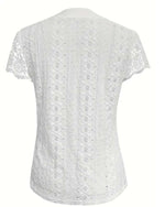 Bluse Rund Hals Blonde Hæklet Korte Ærmer